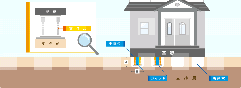 また、この支持台はジャッキアップ基礎が水平になった時にコンクリートで固定させます。