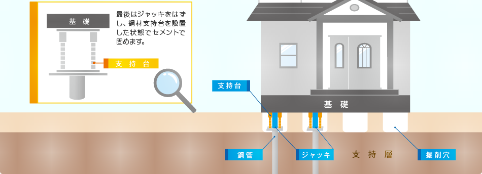 家屋直下の地盤に、表面支持地盤があることが確認された場合や部分的修正の場合に選択されます。