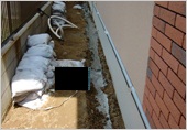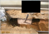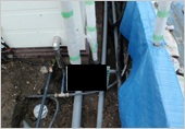 配管確認作業(建物外周にある配管を出す) (1) 建物外周にある配管を掘削して確認。 (2)掘削する場合に障害のある配管を切り回しする場合があります。【設備会社に確認必要】 |