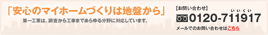 地盤調査・地盤改良・杭・設計・施工・杭打ち・杭抜き・沈下修正の事なら第一工業にお任せください。